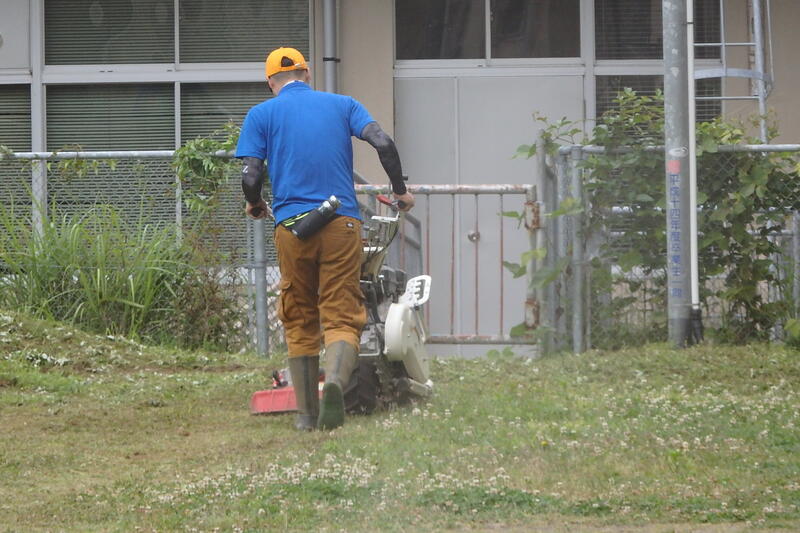 校舎の外側の斜面の草刈りもしていただきました。