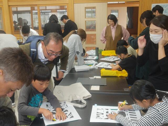 式典の後は、ふれあい学習が行われました。1、2年生はさんさんクラブ連合会の方から昔の遊びを習いました。竹馬やコマ回し、竹とんぼなど今の子どもたちには馴染みのない遊びに真剣に取り組んでいました。3、4年生は世界農業遺産と神楽について田尻隆介さんに講話をいただき、その後に佐藤高申さんの指導の下彫り物づくりをしました。5・6年生は高千穂高校ジアスアカデミーの方々から世界農業遺産と神楽について学習しました。地域の方々と交流する機会の多い1日となりました。