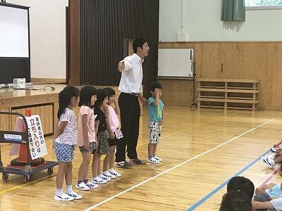 7月10日(火)今日は全校集会が行われました。校長先生からワールドカップで活躍したのは日本選手だけでなくゴミ拾いをした日本人サポーターやロッカールームをきれいにした控え選手がいたことを紹介され、チームワークの大切さを子どもたちに伝えてくださいました。その後に、門前町通りの通行について生徒指導主事から話がありました。最後に陸上と空手の表彰がありました。