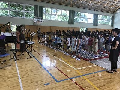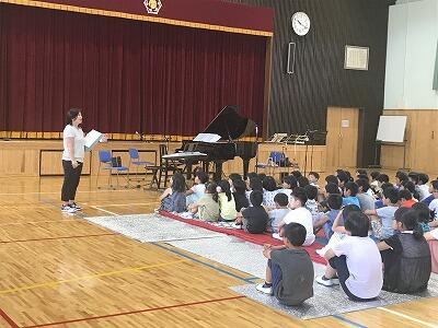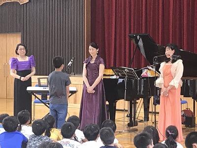 6月27日(水)に鑑賞教室が行われました。『ARUKU』の3名に来ていただき、普段は聞くことができない演奏会を体験することができました。地域の方々も数多く来校されました。