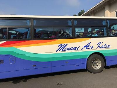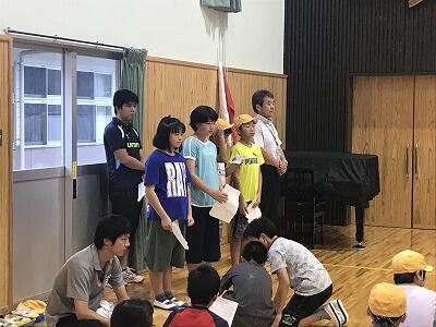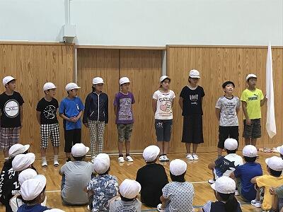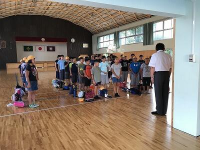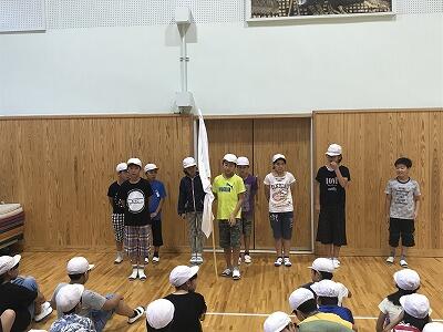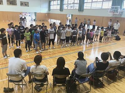 7月16日(木)高千穂町子ども水泳大会が行われました。体育館で出発式を行ったあと、バスに乗り込んで出発しました。