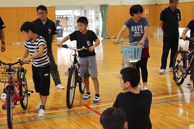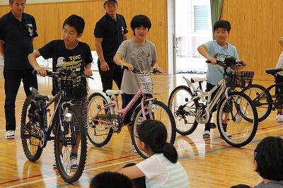 本日、6校時に5・6年生対象に自転車の乗り方に関する交通安全教室が行われました。交通安全協会から2名の指導員と岩戸駐在所の協力を得て、岩戸地区交通安全協会の4名の方々と一緒に自転車の乗り方について学びました。