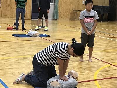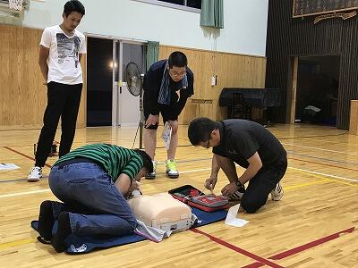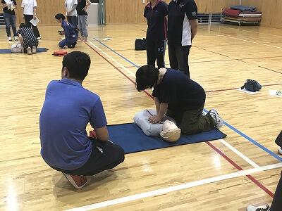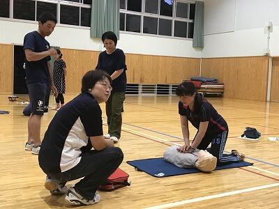 7月11日(水)19:00から第1回家庭教育学級及び学校保健委員会主催の心肺蘇生講習会が開催されました。夏休みに向けて心肺蘇生法とAEDの使い方についての実習がありました。今年は陸上部の呼びかけも有り、例年よりにぎやかな会となりました。