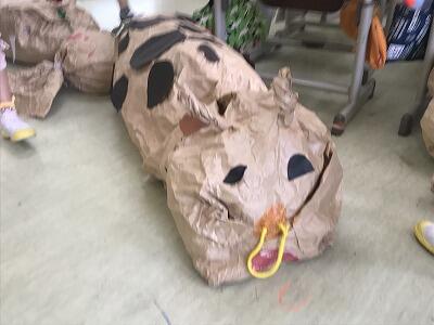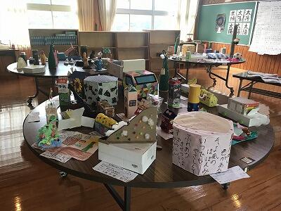 今日、2年生の図工の作品が完成しました。大物作品がずらりと並んで圧巻でした。