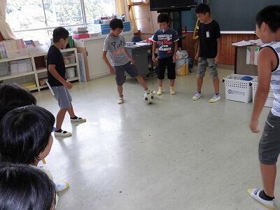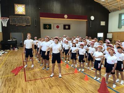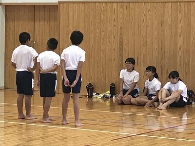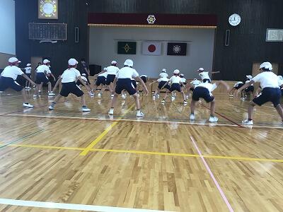 9月18日(火)3・4年生のソーラン節の練習がありました。振り付けは覚えていますが、先生方の指導で細かい部分の仕上げに向けて頑張っています。