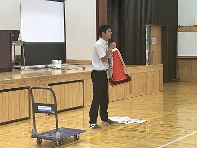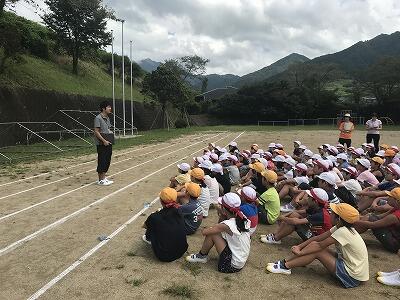 9月3日(月)に地震を想定した避難訓練が行われました。避難を始めてから報告までの時間は昨年よりも20秒ほど早い避難時間になりました。ご家庭でも地震が起こった際の約束事を話し合っていただけるとありがたいです。