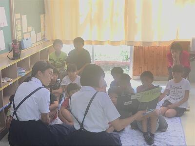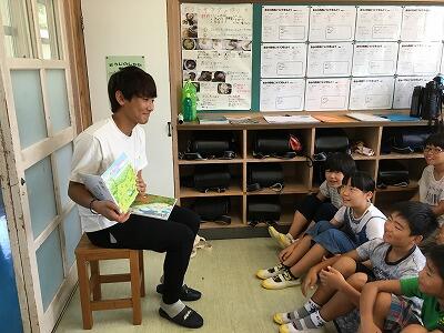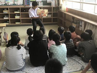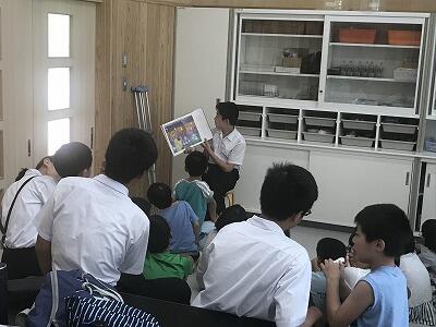 9月5日(水)はがらがらどんによる読み聞かせが行われました。毎週行われる読み聞かせですが、今日は大学1年生になった晴輝先輩が来校して読み聞かせを行ってくれました。