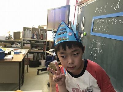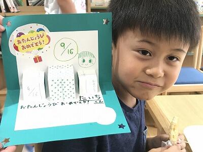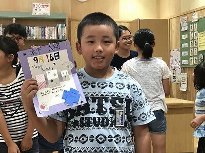 9月4日(火)は台風21号接近のため10時登校になりました。毎月、健康委員会の活動としてお誕生給食会が開かれます。今日は9月生まれのお誕生給食会が行われました。亜たかいメッセージカードをもらいました。