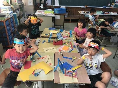 2年生は図工の時間に「輪っかで変身」の作品作りを行いました。どんなものに変身するんだろう?