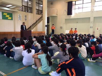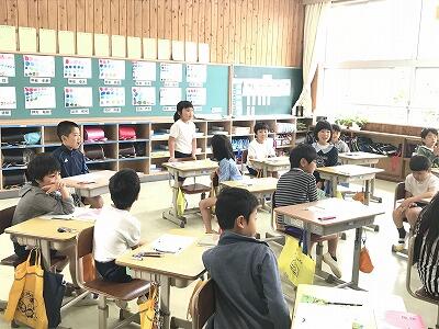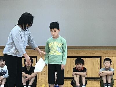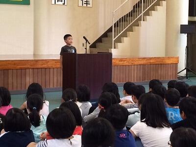 今日は、全校朝会が行われました。連休中の全校朝会となりましたが、子どもたちの元気な声に元気をもらいました。校長先生と「命を大切にする」「勉強を頑張る」「人に優しくする」という3つの約束をしました。そして、連休中の過ごし方についてお話がありました。楽しいゴールデンウィークにしましょう。
