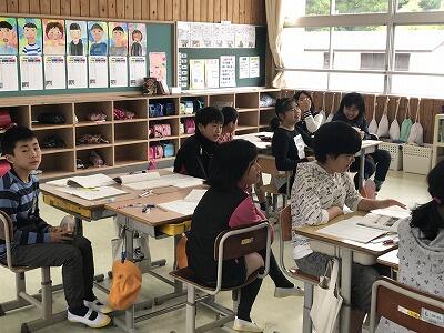 西臼杵の小学校の学校紹介の様子です。大きな声が響き渡りました。