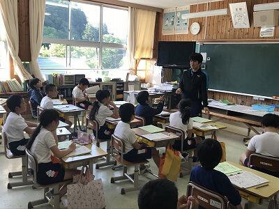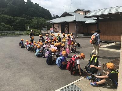 本日、交通安全教室が行われました。駐在所のおまわりさんと交通安全指導員の2名に来ていただき指導していただきました。毎日通り慣れている道路ですが、横断歩道の歩き方を再度確認しました。ゴールデンウィークには多くの車が岩戸地区に来ますので、交通安全に気をつけるようにご家庭でもご指導ください。