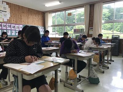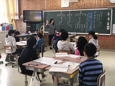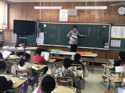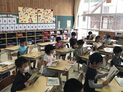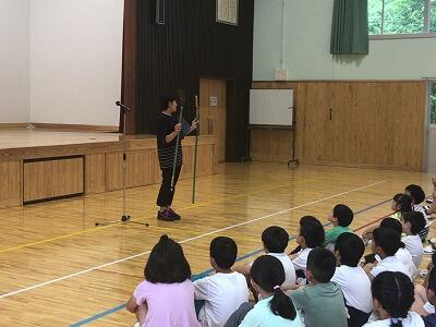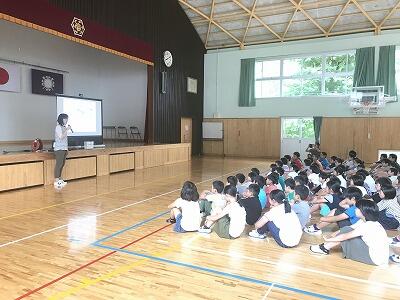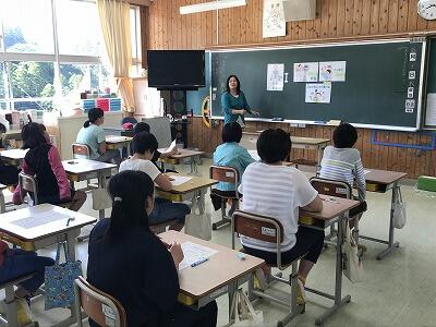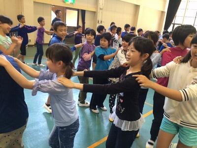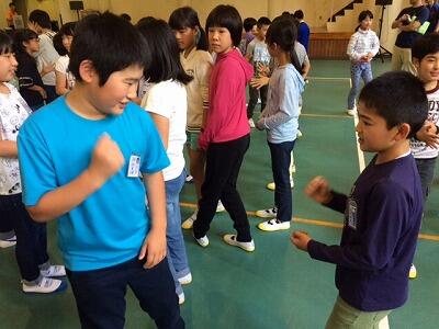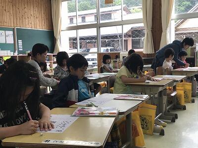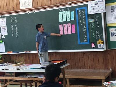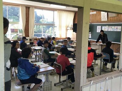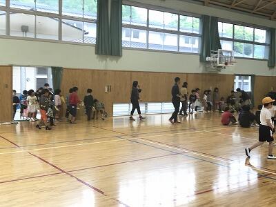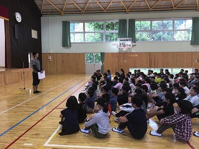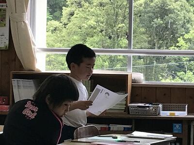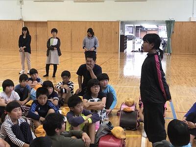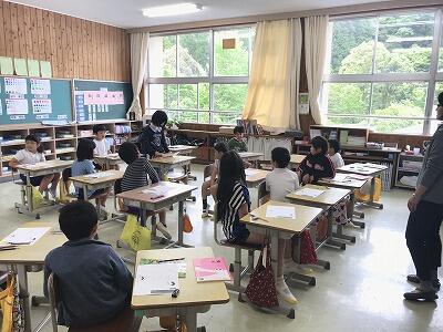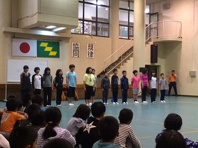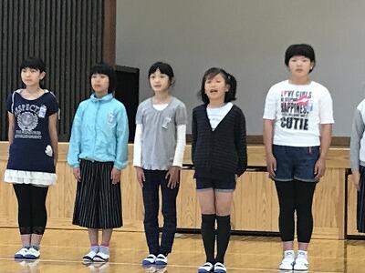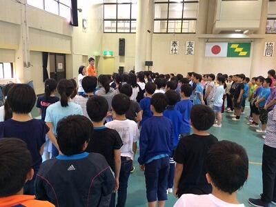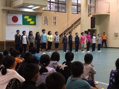 西臼杵の小学校の学校紹介の様子です。大きな声が響き渡りました。