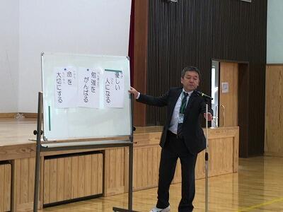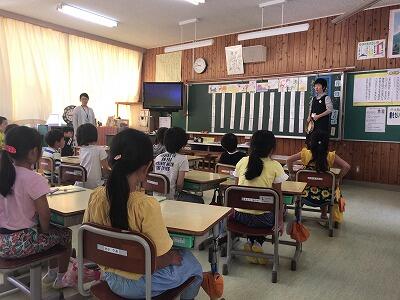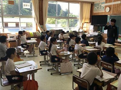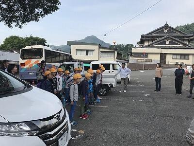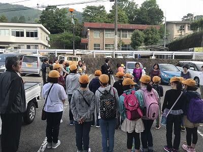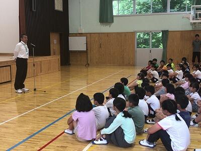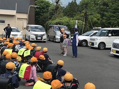 本日、交通安全教室が行われました。駐在所のおまわりさんと交通安全指導員の2名に来ていただき指導していただきました。毎日通り慣れている道路ですが、横断歩道の歩き方を再度確認しました。ゴールデンウィークには多くの車が岩戸地区に来ますので、交通安全に気をつけるようにご家庭でもご指導ください。