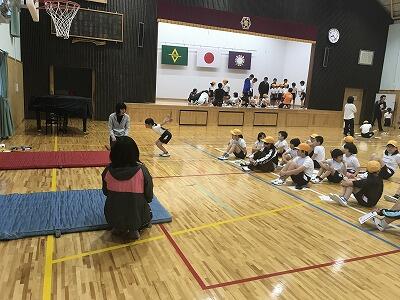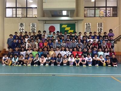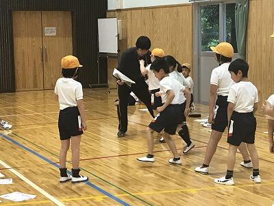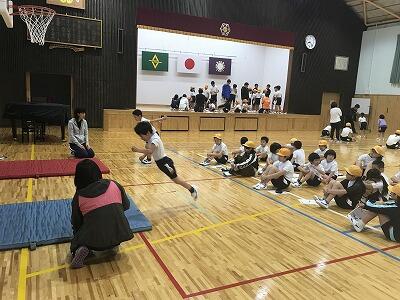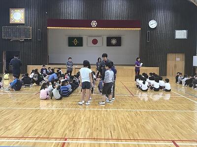 今日は、新体力テストのための全校体育が行われました。上学年と下学年がペアになり体力テストを行います。9日(水)が本番です。
