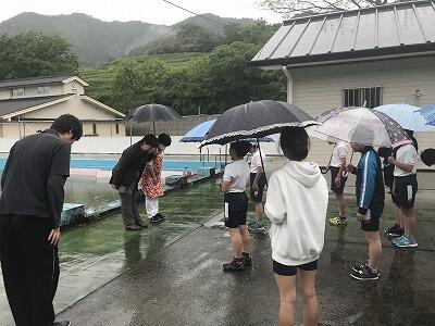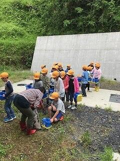 今日は、4月に作ったEM菌のプールへの投入を行いました。地域の方の協力を得て、6年生がプールにEM菌を投入しました。プール掃除が楽しみです。