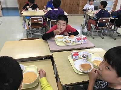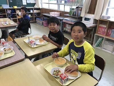 今日は6年生の給食でした。みんなでおいしくいただきました。