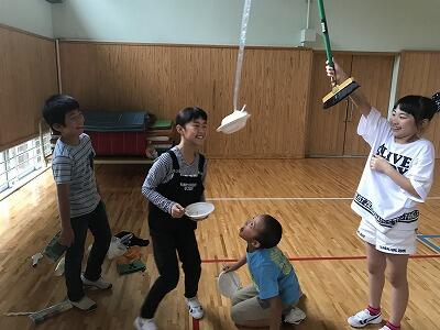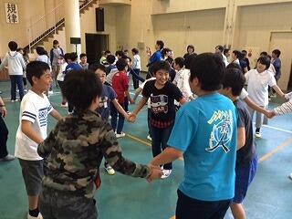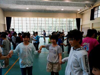 むかばきでの体験プログラムが始まりました。最初はアイスブレーキングです。3日間一緒に過ごす友達との交流の時間です。