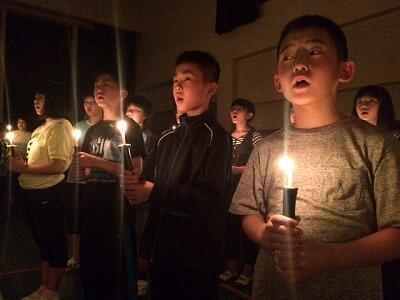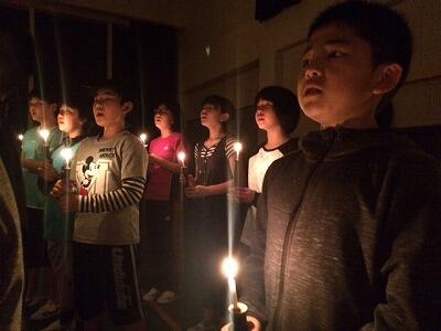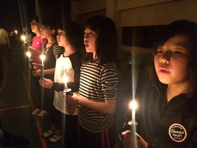 2日目の夜に行われたキャンドルの集いです。幻想的です。