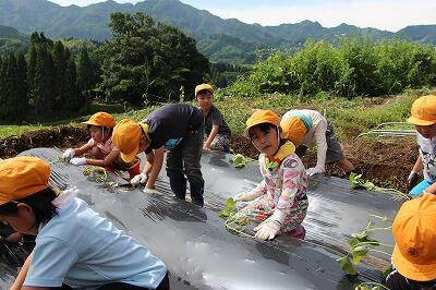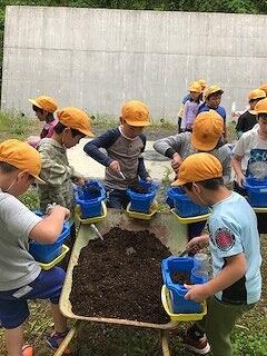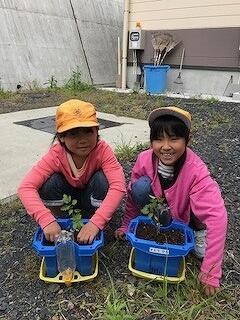 本日、2年生はミニトマトを植えました。大きくなってたくさん実をつけてほしいですね。