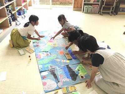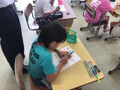 1年生の図工の時間です。「いろいろなかたちのかみから」という内容の授業です。楽しそうに創作活動に取り組んでいました。参観日で見ることができると思います。
