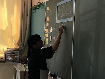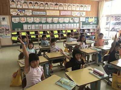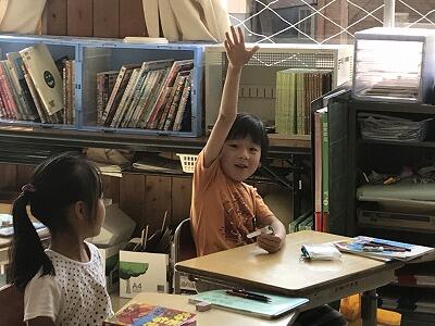 1年生の授業の様子です。姿勢も手のあげ方もバッチリです。