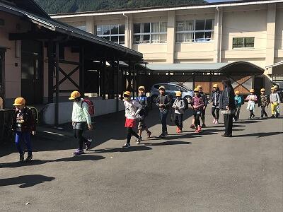 11月15日(水)は高千穂町教育研究会があるため、給食終了後、集団下校となりました。みんな元気に下校していきました。