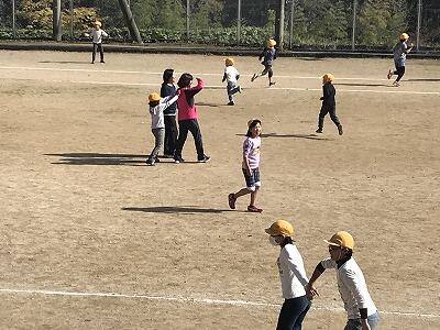 今日は、児童代表委員会の提案で全校遊びが行われました。手つなぎ鬼を全校で取り組んで楽しみました。