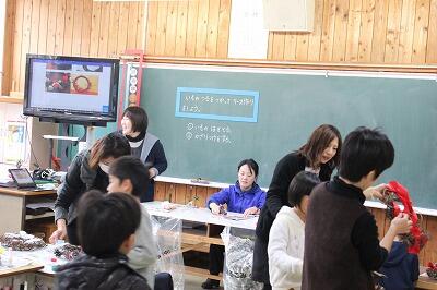 本日、1年生はイモのツルでつくったリース作りを行いました。工夫をしながら頑張ってつくっていました。素晴らしい作品ができました。