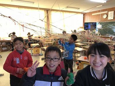 本日3年生は「ひもひもワールド」を行いました。3年生が大きな作品を先生と一緒に作り上げる姿はほほえましかったですよ。