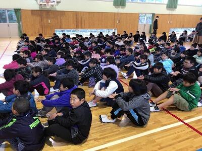 今日は、臨時全校集会が行われました。岩戸小学校の子どもたちは、JA全国女性組織協議会主催「フレミズ"わたしの一歩"作文コンクール」で優秀賞を受賞された佐藤鮎美さんの作文を聞くことができました。明るく前向きに生きることの素晴らしさを子どもたちも感じてくれたようです。その後、表彰も行われました。