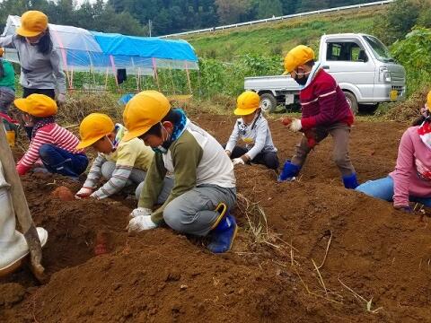 10月21日(木) 1・2年生が6月に苗を植え、9月には雑草取りもしたサツマイモの待ちに待った収穫を行いました。葉っぱはイモムシに食べられてほとんどなかったのですが、ほり出してみると大きくて立派なサツマイモがたくさんとれました。畑を提供してくださった工藤智功様を始め、これまでご協力いただいた保護者の皆様、ありがとうございました。