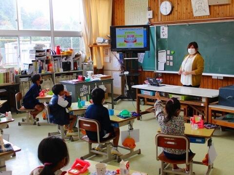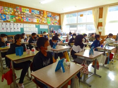 11月11日(木) 2時間目に保健福祉総合センターげんき荘の保健師を講師に招聘して、5・6年生を対象に歯磨き教室を行いました。5・6年生はむし歯と歯周病についても学習し、実際に鏡を使ってブラッシングの練習もしました。