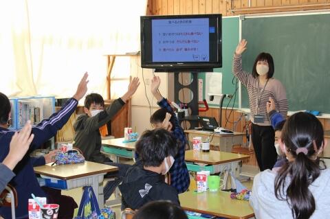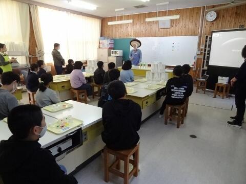 11月29日(月) 県主催の「味覚の授業」が行われ、食育団体IKUMI(講師:杉本和英氏)による「味覚の授業」を5年生が受けました。五味・五感について学んだり、鼻をつまむと味が分かりにくくなる体験をしたりしました。また、「うまみ」について実際に舌で味を確認し、「しいたけ」に含まれる「グアニル酸」が、外国の人の舌をうならせるほどのものであるということを知って驚いていました。
