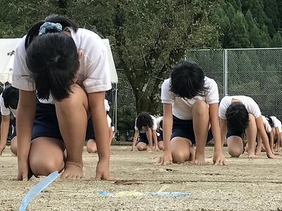 今日は5・6年生の組体操はグランドを使っての練習となりました。今まで体育館だったので、最初は戸惑いもありましたが、泥だらけになりながら合わせていきました。確実に向上していく子どもたちの動きは写真からも伝わるのではないでしょうか?泥がついた背中は頑張った証です。本番を楽しみにしておいてください。