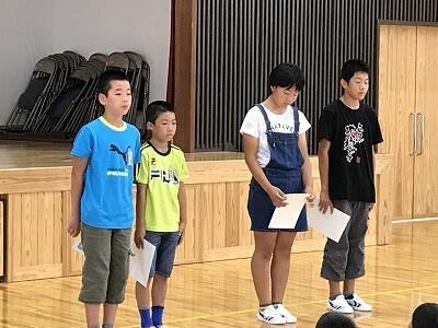 今日は登校日、みんな元気に登校してくれました。全校集会で校長先生が宮日新聞に紹介された『地区別学習会』の記事を使って、体験してほしいことについてお話がありました。生徒指導の先生から、安全に残りの夏休みを過ごしてほしいとの話の後、子ども水泳大会の表彰がありました。