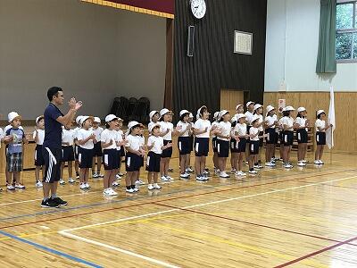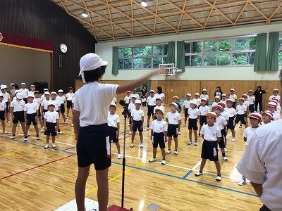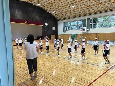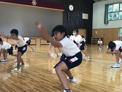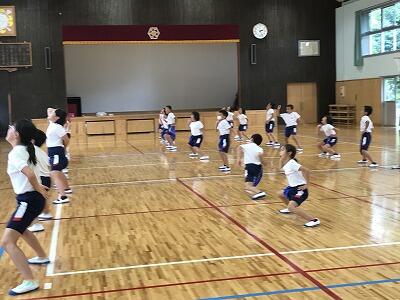 運動会の練習が始まっています。運動場や体育館で元気な声が響いています。1・2年生の表現の練習も始まりました。立つ位置、相手を確認するところから始まっています。運動会当日を楽しみにしてください。