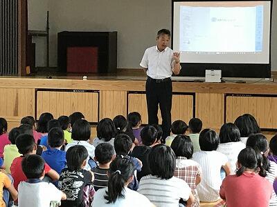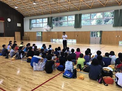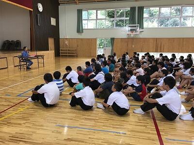 地区別学習会の中で2つの講演会を行いました。五ヶ瀬中等高等学校に進学した卒業生の話を聞く会と東岸寺出身で白バイ隊員としてご活躍の佐藤優季さんの話を聞く会です。1年生から3年生の講演会の中では、実演もあり子どもたちは目をきらきらさせて聞いていました。4年生から中学3年生を対象にした『私の足跡』という自分の夢を実現させるために頑張ってきたことをわかりやすく情熱をもって語る姿に子どもたちも吸い込まれていくようでした。