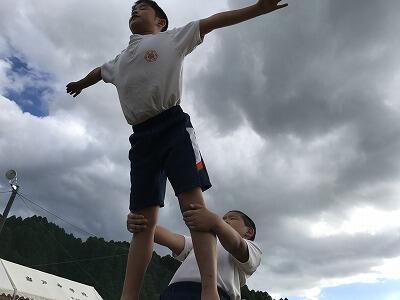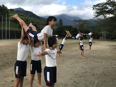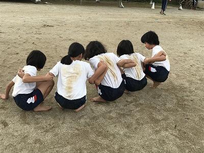 今日は5・6年生の組体操はグランドを使っての練習となりました。今まで体育館だったので、最初は戸惑いもありましたが、泥だらけになりながら合わせていきました。確実に向上していく子どもたちの動きは写真からも伝わるのではないでしょうか?泥がついた背中は頑張った証です。本番を楽しみにしておいてください。
