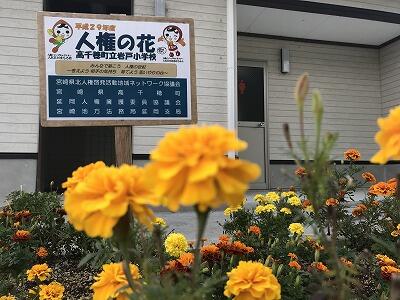 人権の花がきれいに咲いています。台風の影響でマリーゴールドは少し弱っていましたが、最近また元気に花を咲かせてくれています。サルビアは朝露のなかとてもきれいです。
