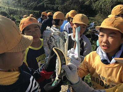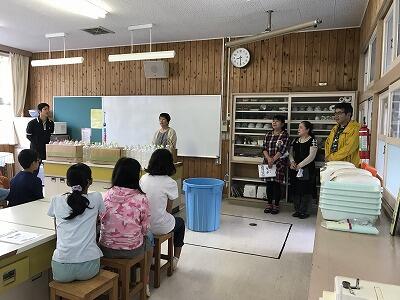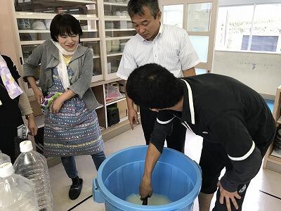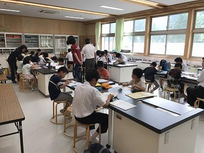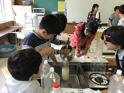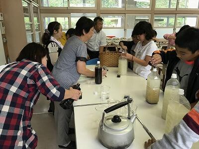 6年生は外部講師を招いて、EM菌の効果に関する授業を行いました。EM菌の効果を学習した後、EM菌を培養するペットボトルをつくりました。プールにまく準備をしていきます。