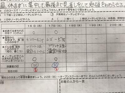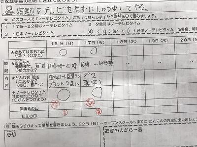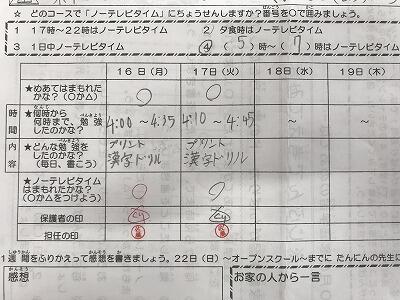 10月16日(月)から10月21日(土)までの期間、家庭学習がんばり週間・ノーテレビタイムになっています。普段よりもテレビを見る時間を少なくして学習に取り組む週間となっています。カードを記入しています。今日は4年生のカードを紹介します。