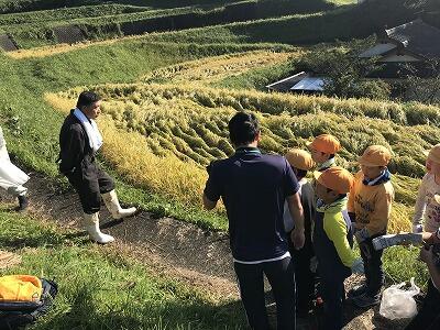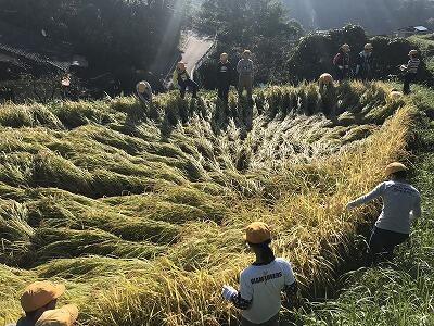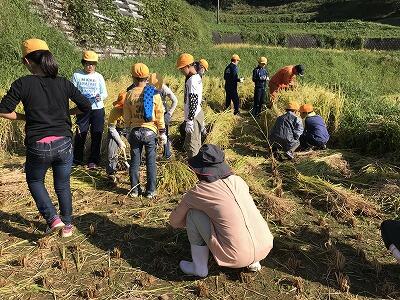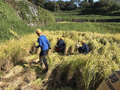6月に田植えをした田んぼで、本日保護者のご協力も得て稲刈りを行いました。台風21号の影響で、倒れていた稲もありましたが、2時間あまりで稲刈りを終了することができました。2週間後、脱穀の予定です。