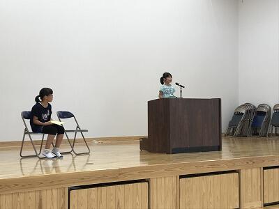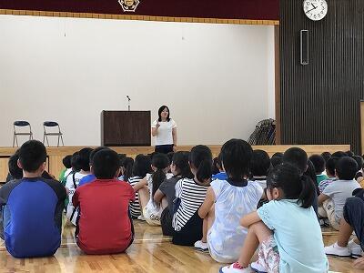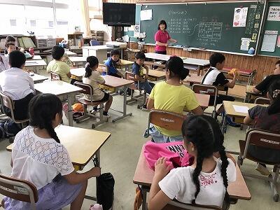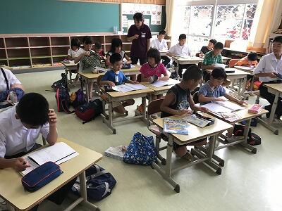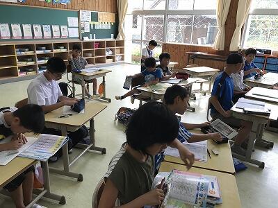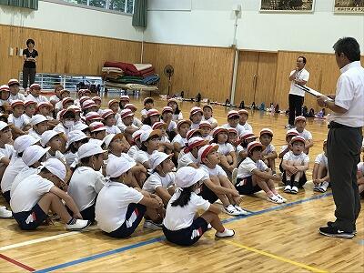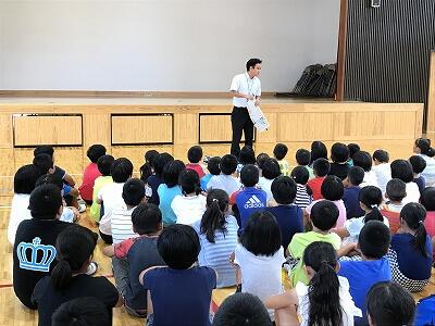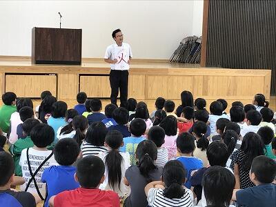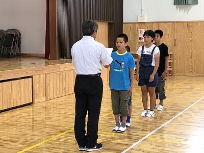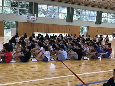 今日は登校日、みんな元気に登校してくれました。全校集会で校長先生が宮日新聞に紹介された『地区別学習会』の記事を使って、体験してほしいことについてお話がありました。生徒指導の先生から、安全に残りの夏休みを過ごしてほしいとの話の後、子ども水泳大会の表彰がありました。