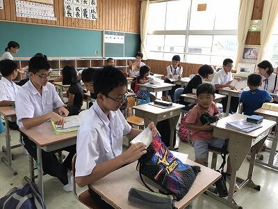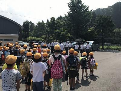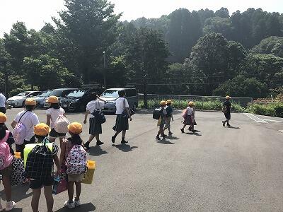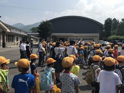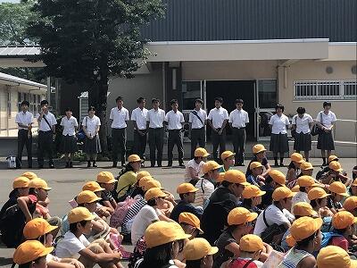 登校日の集団下校は、高千穂高校生ボランティアの生徒と一緒に行いました。18名の生徒たちが参加してくれました。頼もしい存在です。ありがとうございました。