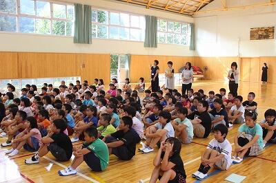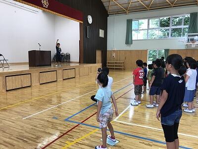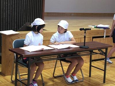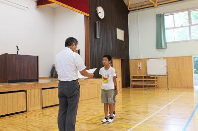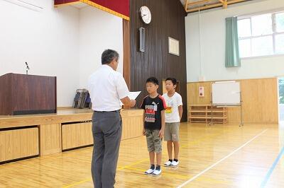 平成29年度第1学期の終業式が行われました。2人の児童が立派な発表をしてくれました。校長先生が第1学期の各学年の成長をほめてくださいました。聴く姿勢も立派でした。各学級とも終業式に臨む態度についてきちんと指導されており、素晴らしい終業式となりました。その後、各学級ごとに振り返りがなされ、学級に戻っていきました。