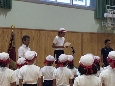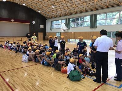 本日、町子ども水泳大会がすこやか館で行われます。今日の出発式の様子です。校長先生が、『自分との戦いです。今自分が持っている力を出し切ってきてください』と激励をしてくださいました。岩戸っ子頑張れー!!!!!
