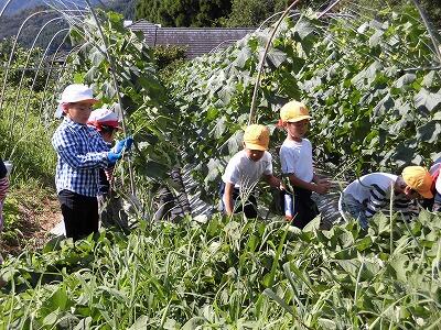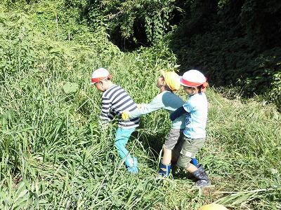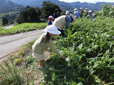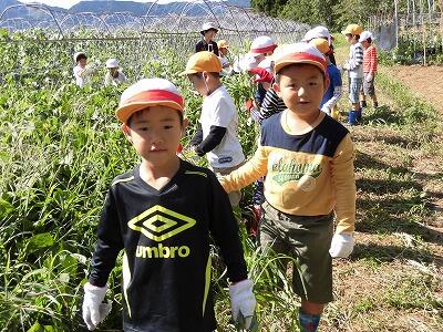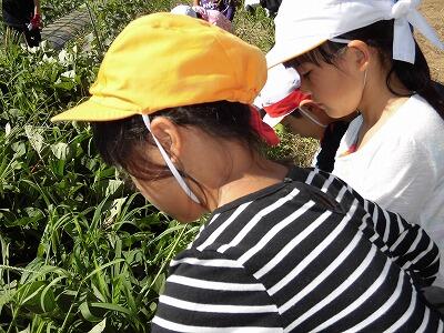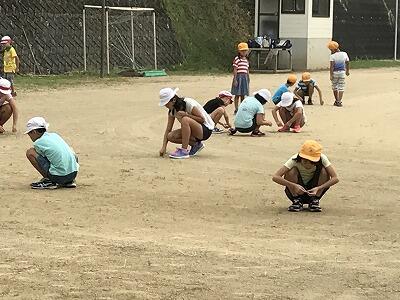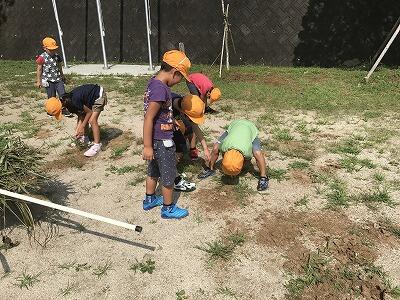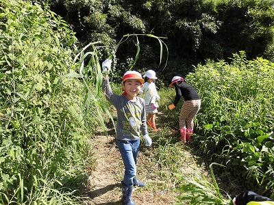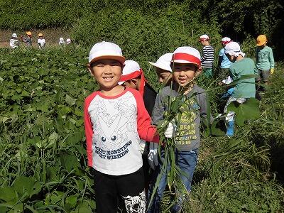 1・2年生でイモ畑の草抜きに行ってきました。夏の間に、元気よく伸びた雑草をみんなで力を合わせて抜いていきました。収穫が楽しみです。早く大きくなあれ!