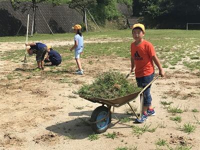 岩戸小学校の運動場は草が生えて、シマウマが住む草原のようになっていましたが、今日、全校児童で行った草抜きでずいぶんきれいになりました。暑い中ありがとうございました。8月20日(日)は第2回PTA環境整備作業になっております。ご協力お願い致します。