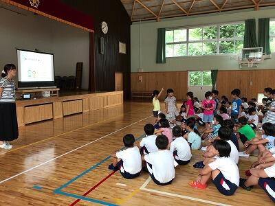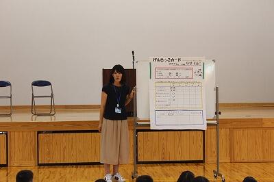 今日は元気もりもりタイムが体育館で行われました。「げんきっこカード」を振り返り、規則正しい生活リズムの大切さについてお話がありました。早寝・早起きができているとおいしくご飯を食べることができたり、お通じがよくなったりと体によいことがおこることを確認しました。運動会も近いので生活のリズムを整えて学校生活を送っていきましょう。